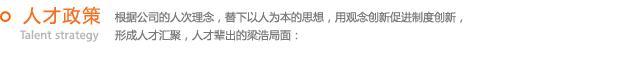 留人 依靠“事業(yè)、責任、感情、薪酬”,不設置任何堡壘,創(chuàng)造寬松的人才進出環(huán)境;人才政策是公司理念的具體表現(xiàn),也是公司文化的重要傳承,公司愿為各路英才提供力所能及的服務與保障,使員工“人盡其才,才盡其用”