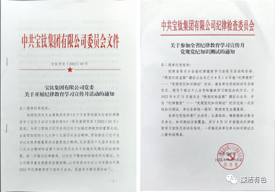 8月16日,寶鈦集團(tuán)紀(jì)委專門印發(fā)《關(guān)于參加全省紀(jì)律教育學(xué)習(xí)宣傳月黨規(guī)黨紀(jì)知識測試的通知》,要求各單位黨組織廣泛動員、認(rèn)真組織,掀起學(xué)習(xí)黨規(guī)黨紀(jì)的熱潮,確保教育對象全員參與,知識測試全面覆蓋。