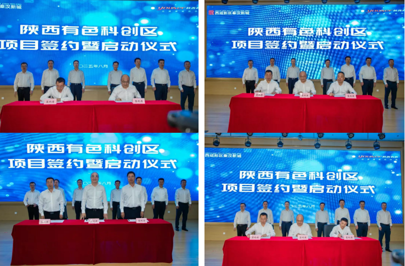 8月19日,陜西有色科創(chuàng)區(qū)項(xiàng)目簽約暨啟動(dòng)儀式在西咸新區(qū)秦漢新城管委會(huì)舉行。陜西有色金屬集團(tuán)黨委書(shū)記、董事長(zhǎng)吳群英,西咸新區(qū)黨工委書(shū)記劉國(guó)榮見(jiàn)簽并揭牌。集團(tuán)公司黨委副書(shū)記、董事、總經(jīng)理莫勇,西咸新區(qū)管委會(huì)主任齊海兵、副主任張博出席并見(jiàn)簽。集團(tuán)公司黨委委員、副總經(jīng)理霍學(xué)杰主持簽約儀式。