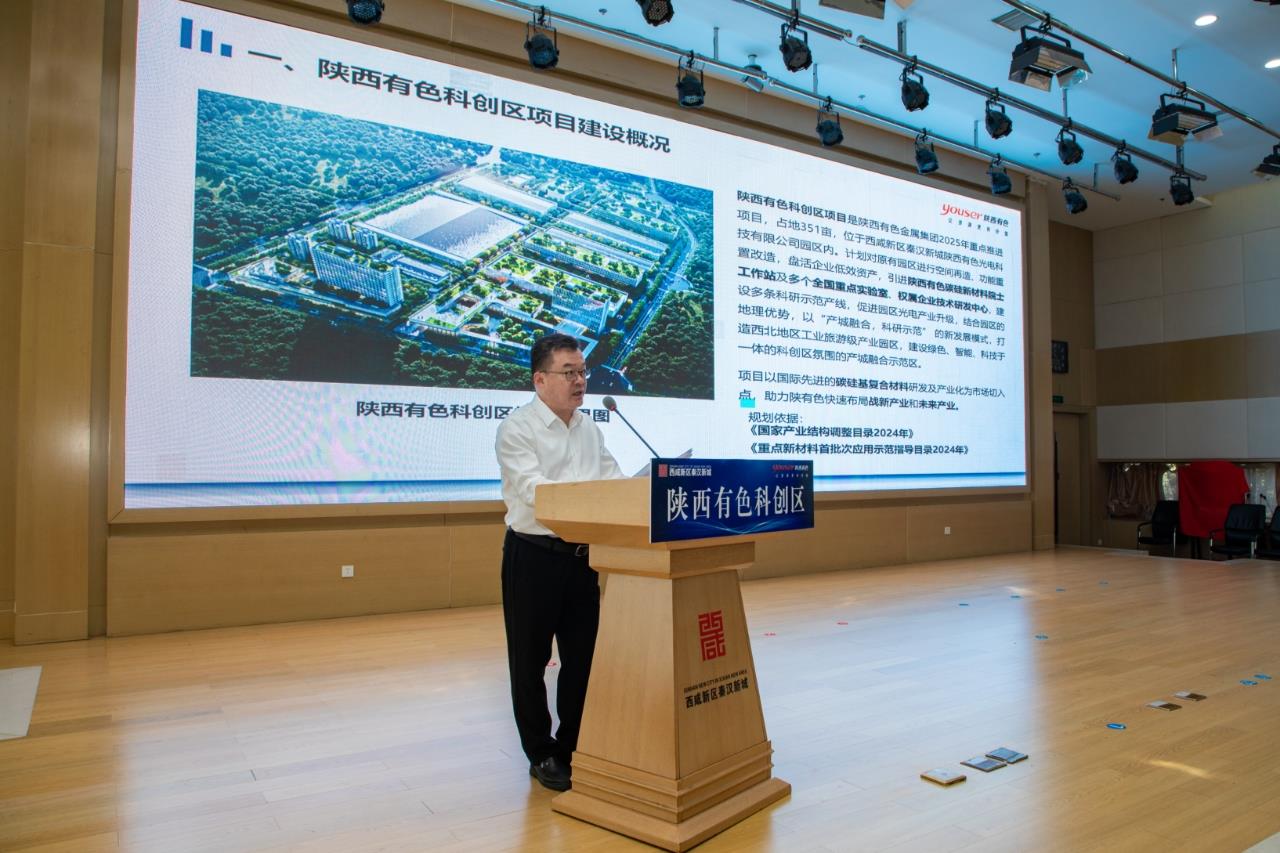 集團(tuán)公司副總經(jīng)理蘇旭盛就科創(chuàng)區(qū)項(xiàng)目的整體規(guī)劃、入駐項(xiàng)目情況及后續(xù)推進(jìn)計(jì)劃作了詳細(xì)介紹,指出陜西有色科創(chuàng)區(qū)項(xiàng)目瞄準(zhǔn)戰(zhàn)新產(chǎn)業(yè)和未來(lái)產(chǎn)業(yè),以國(guó)際先進(jìn)的碳硅基復(fù)合材料研發(fā)及產(chǎn)業(yè)化為市場(chǎng)切入點(diǎn),通過(guò)空間重構(gòu)、功能升級(jí)與技術(shù)創(chuàng)新,建設(shè)研發(fā)實(shí)驗(yàn)室、中試車(chē)間及院士工作站,構(gòu)建“產(chǎn)學(xué)研用”一體化平臺(tái),建設(shè)綠色、智能、科技于一體的產(chǎn)城融合示范區(qū)。陜西有色科創(chuàng)區(qū)項(xiàng)目是集團(tuán)公司響應(yīng)國(guó)家創(chuàng)新驅(qū)動(dòng)發(fā)展戰(zhàn)略、布局戰(zhàn)略性新興產(chǎn)業(yè)、未來(lái)產(chǎn)業(yè)的重要舉措,項(xiàng)目的落地將成為集團(tuán)公司高質(zhì)量發(fā)展的新引擎,對(duì)于推動(dòng)秦漢新城新材料產(chǎn)業(yè)延鏈補(bǔ)鏈強(qiáng)鏈、打造先進(jìn)制造業(yè)高地具有重要意義。