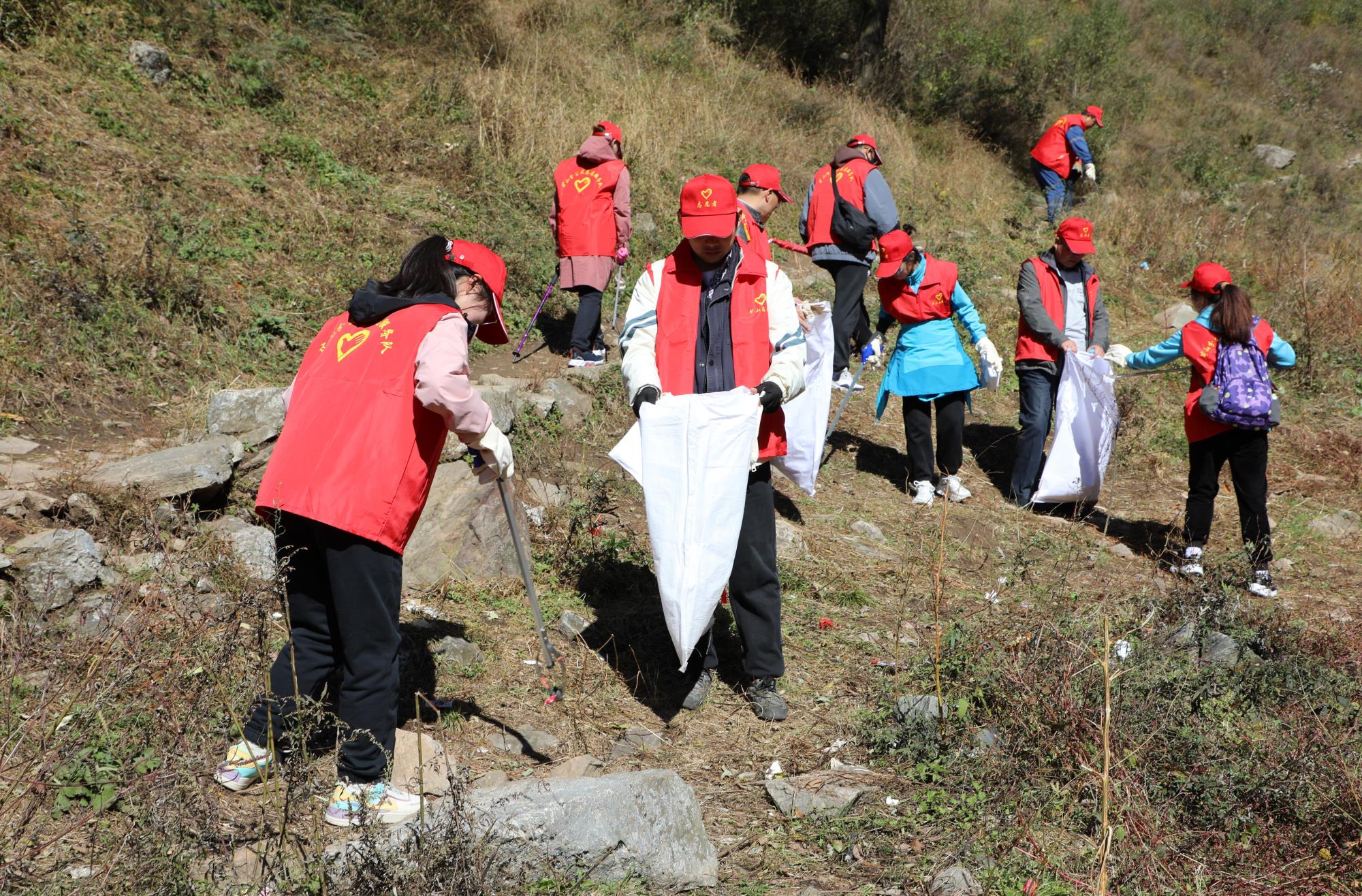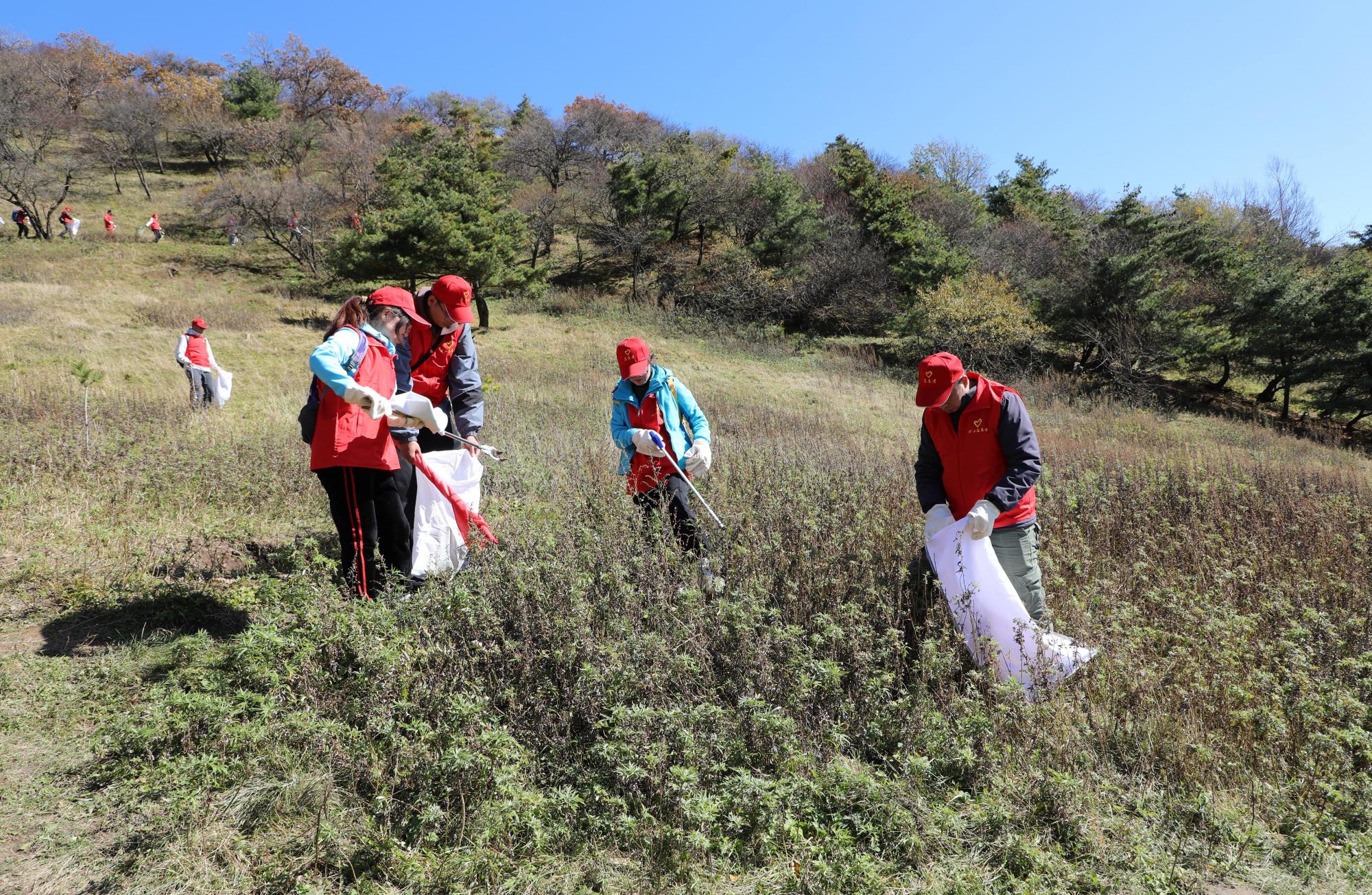 當(dāng)日,陽光正好,志愿者們身著醒目的紅色馬甲,早早匯聚于華陽草甸。他們士氣高昂,以飽滿的熱情和強(qiáng)烈的責(zé)任感,投入到這場清山行動中。手中的垃圾袋和夾子成為了他們的“環(huán)保利劍”,草叢中、山坡上、小徑邊,垃圾無所遁形,小到煙頭,大到食品包裝,都被一一清理,華陽草甸重?zé)崈襞c美麗。