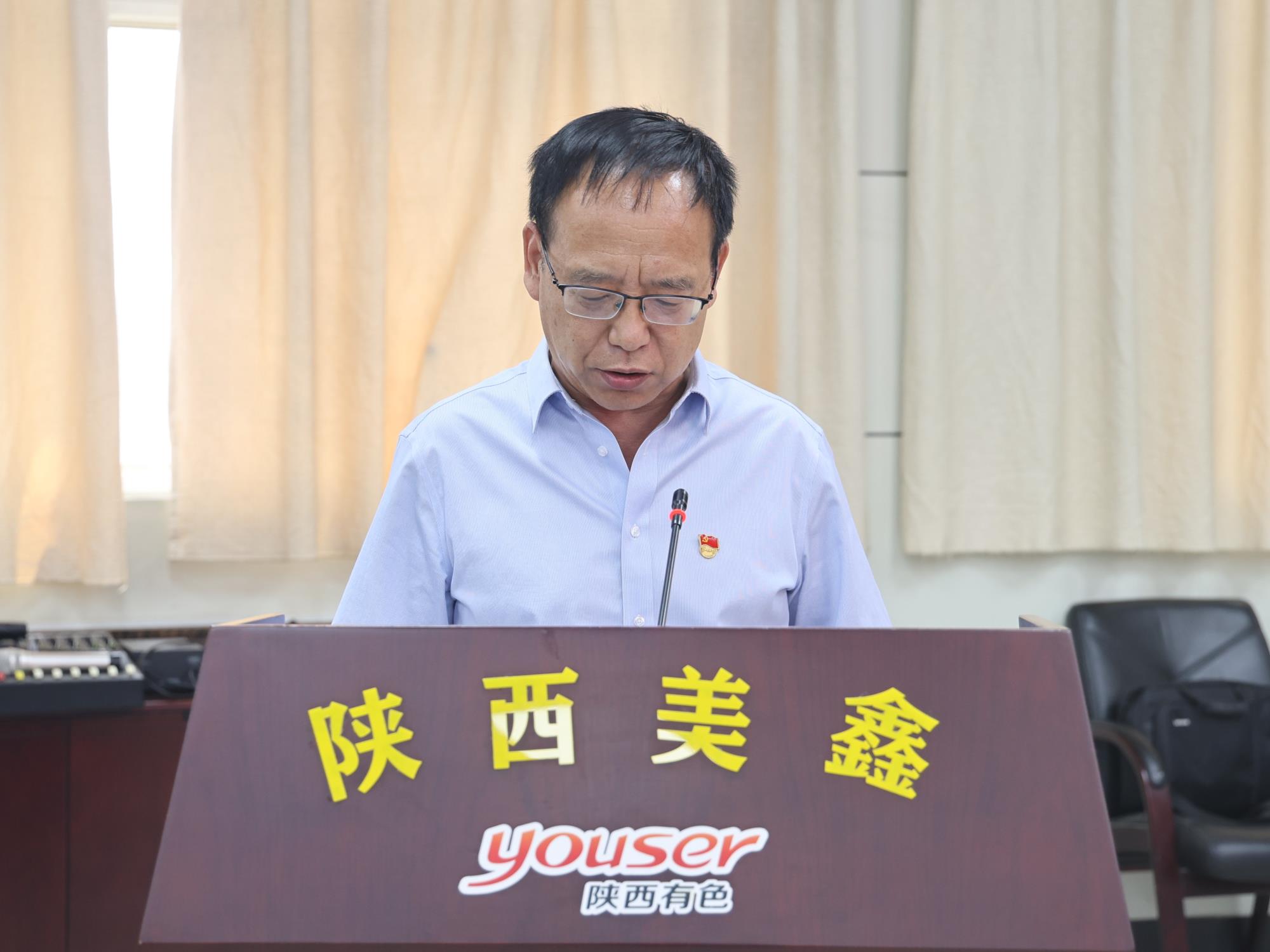 陜西美鑫公司黨委副書記、董事、總經(jīng)理陳萬勝宣讀了公司黨委表彰決定,對20名優(yōu)秀共產(chǎn)黨員、5名優(yōu)秀黨務(wù)工作者以及5個先進基層黨組織予以表彰并頒發(fā)榮譽證書及獎牌。