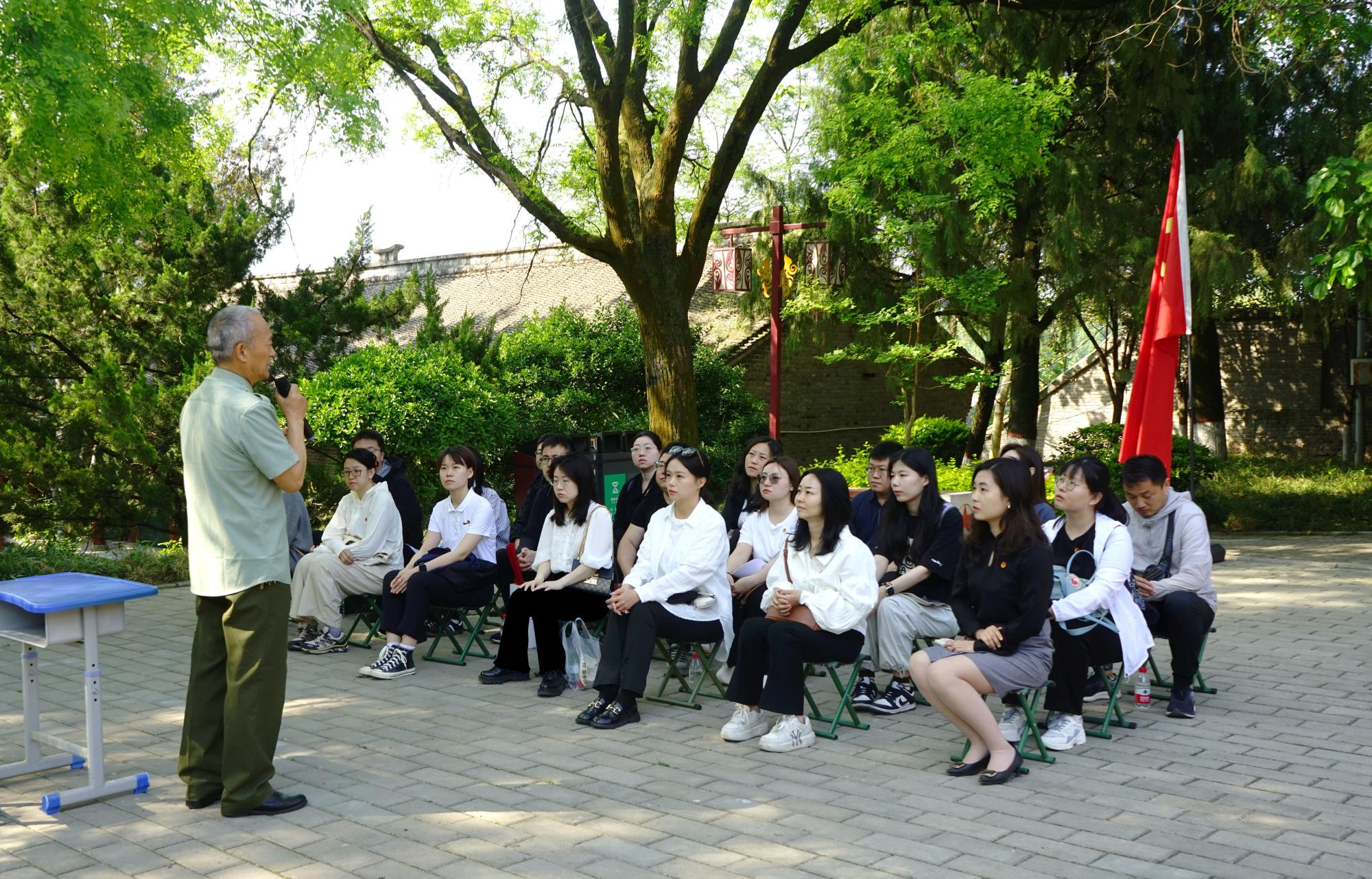 在起義舊址的大槐樹下,參加過中越邊境自衛(wèi)反擊戰(zhàn)的老兵陳乾明老師為青年們授課,飽含感情的講述將大家?guī)Щ貥屃謴椨甑膽?zhàn)場,帶回硝煙四起的年代,也更讓青年們深切體悟到,我們習(xí)以為常的和平盛世,是千千萬萬保家衛(wèi)國的戰(zhàn)士負(fù)重前行換來的,而青年的使命,正是不辜負(fù)犧牲、不辜負(fù)厚望,為中華民族的偉大復(fù)興接續(xù)奮斗。